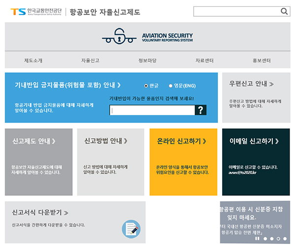 항공보안 자율신고제도 홈페이지(avsec.ts2020.kr). |