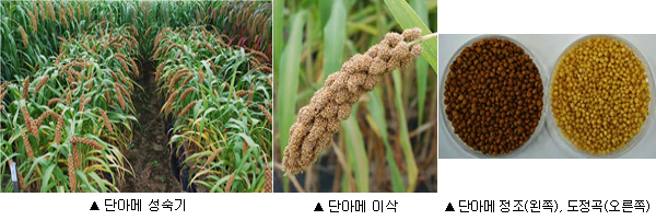 농촌진흥청 국립식량과학원 밭작물개발과 고지연 박사는 “조 ‘단아메’는 기계 수확이 가능해 노동력을 절감할 수 있는 품종이며, 가공성이 뛰어나 다양한 가공식품의 원료곡으로 활용할 수 있을 것으로 기대한다.”라고 말했다.