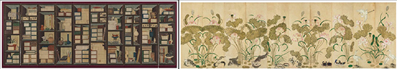 처음으로 해외 영구 반출 허가를 받은 ‘책가도’(왼쪽)와 ‘연화도’. |