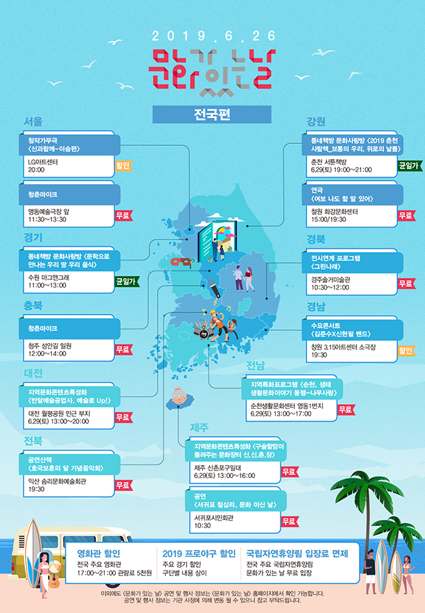 문체부는 오는 26일 6월 ‘문화가 있는 날’과 해당 주간(24~30일)에는 전국에서 2439개의 문화행사를 만날 수 있다고 24일 밝혔다.