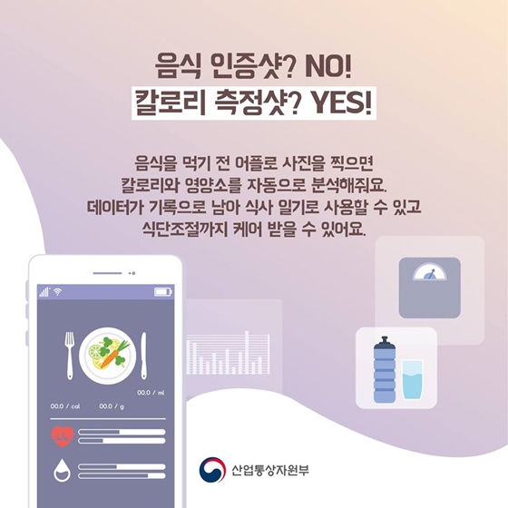 ◆ 음식 인증샷? NO! 칼로리 측정샷!음식을 먹기 전 어플로 사진을 찍으면 칼로리와 영양소를 자동으로 분석해줘요. 데이터가 기록으로 남아 식사 일기로 사용할 수 있고 식단조절까지 케어받을 수 있어요.