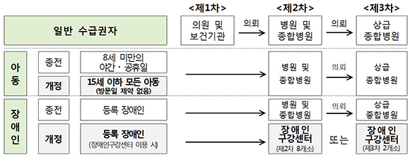 이번 개정은 취학 아동이라도 보호자의 동반이 필요한 경우가 많고, 이용시간대가 한정되어 집 근처 2차 의료기관을 두고도 1차 의료기관에서 먼저 진료를 받아야 하는 등 불편 민원이 제기된 것을 반영한 결과다.