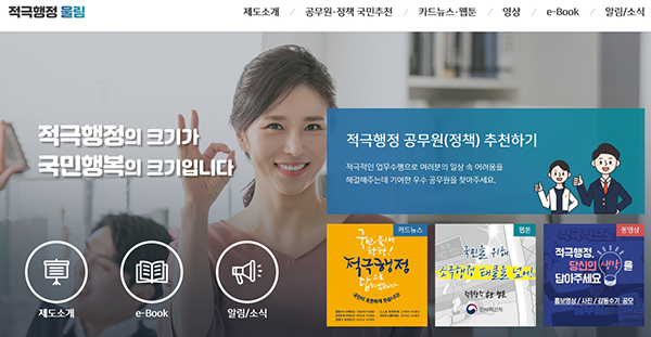 이를 위해 정부 중점 정책으로 추진하고 있는 적극행정에 대한 국민의 공감과 지지를 확보하기 위해 ‘적극행정 울림’ 누리집을 4일 공식 오픈한다.