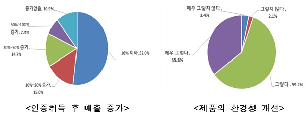 실제로 한국표준협회에서 환경표지 인증기업의 매출 증가액을 분석한 결과, 지난 2013년부터 2017년까지 총 2034개 기업에서 1조 1980억 원의 매출 증가 효과가 있는 것으로 확인됐다.