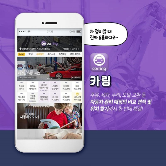 차 수리 주변 매장 비교 견적 앱인 카링은 말 그대로 정비가 필요할 때 그에 딱 맞는 자동차 관련 매장을 비교할 수 있게 해주는 앱입니다. 차를 타고 다니다 보면 타이어, 세차, 수리, 폐차, 중고차, 튜닝, 드레스업, 오일 교환 등 다양한 정비가 필요하기 마련입니다. 그럴 때 카링 앱이 있다면 내 주변에 있는 매장 안내는 물론이고, 근처 매장들의 가격까지 실시간으로 비교할 수 있습니다.