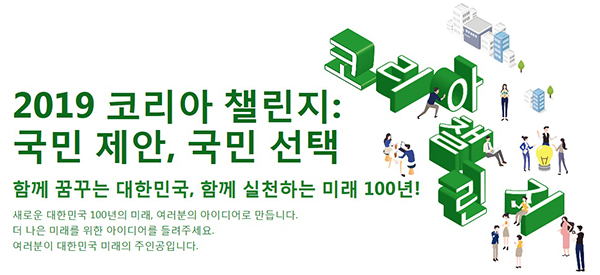 [일간환경연합 한선미 기자]국민이 직접 아이디어를 제안하고 선택하는 국민참여형 아이디어 경연대회 ‘2019 코리아 챌린지 : 국민제안, 국민선택’(이하 ‘코리아 챌린지’)이 시작된다.
