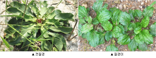 1) 갯질경(Limonium tetragonum) : 갯질경과에 속한 2년생 초본으로 질경이와는 다른 식물이다. 질경이에 비해 잎이 두툼하고 표면에 윤기가 나며 어린잎은 붉은색이 돈다.