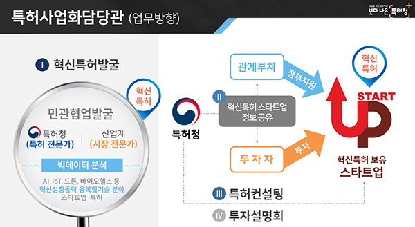 앞으로 특허청의 벤처형조직인 특허사업화담당관은 혁신특허 보유 스타트업을 공정하게 발굴하고 특허 컨설팅과 투자 로드쇼 등 기술창업과 투자 지원을 추진한다.