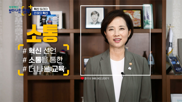 ‘질러혁신’의 첫 번째 주자는 유은혜 부총리 겸 교육부장관으로, “정부혁신은 소통이다”고 선언하면서 교육정책을 국민의 눈높이에 맞출 수 있도록 교육현장과 소통하겠다고 약속했다.
