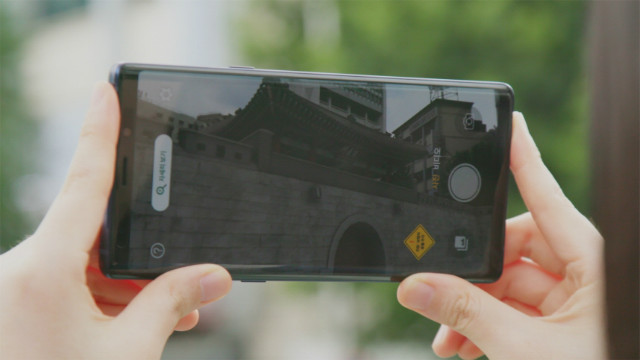 <돈의문 증강현실 서비스를 모바일 애플리케이션으로 실행하는 모습>