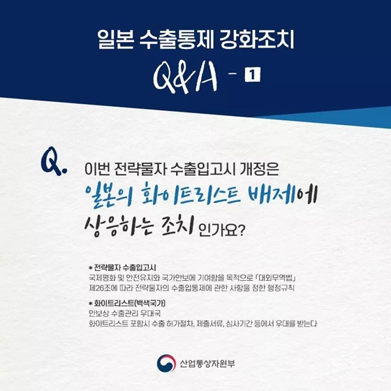 [일간환경연합 장민주 기자]다음은 일본의 수출규제 대응 우리 전략물자 수출입고시 개정 배경에 대하여 카드뉴스로 알아 보겠습니다.
