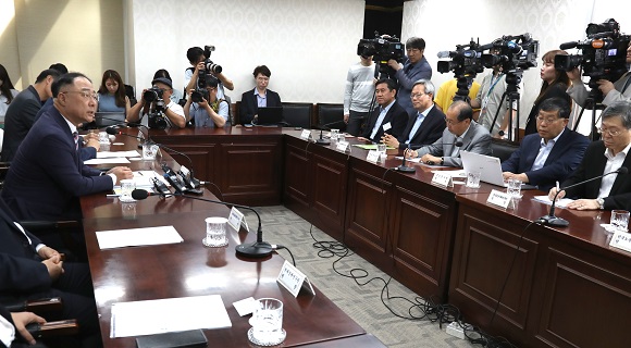 홍 부총리는 이날 오후 정부서울청사에서 국책·민간 연구기관장과 만나 “일본 수출 규제이후 아직까지 우리기업의 직접적인 피해는 나타나고 있지 않지만 일본 정부의 자의적 판단에 따라 언제라도 수출규제가 이뤄질 수 있다는 불확실성의 상존이 더 큰 문제”라며 우려감을 나타냈다.