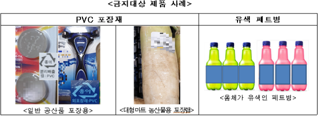 다만, 대체재가 상용화되지 않고, 식·의약 안전과 직접적으로 연관된 의약·건강기능식품, 상온에서 판매하는 햄·소시지, 물기가 있는 축(고기)·수산(생선)용 포장랩(농산물용 포장랩은 금지) 등 일부 제품의 포장재에 한정해 폴리염화비닐의 사용을 예외적으로 허용한다.