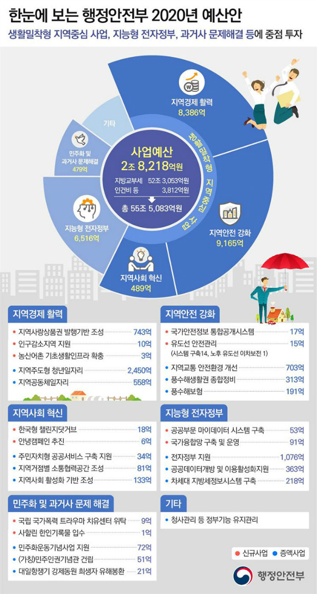 [일간환경연합 신상미 기자]한눈에 보는 행정안전부 2020년 예산안이다.