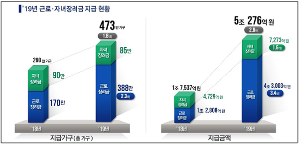 한편, 정부는 일하는 저소득가구의 생활안정을 위해 지난 2006년 근로장려금을, 2015년에는 자녀장려금을 도입한 바 있다.