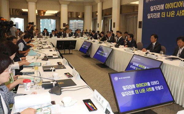 3일 오전 서울 프레스센터에서 열린 제12차 일자리위원회에서 이목희 일자리위원회 부위원장이 인사말을 하고 있다. (사진=(c) 연합뉴스) |