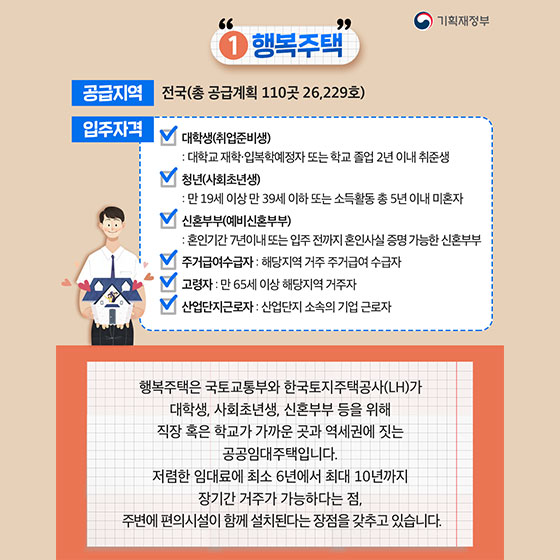 1. 행복주택◆ 공급지역: 전국 (총 공급계획 110곳 26,229호)