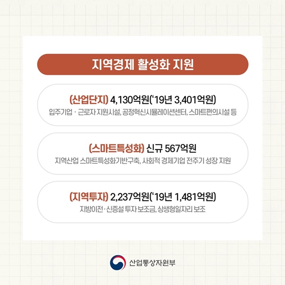 - (산업단지) 4,130억 원(’19년 3,401억 원)