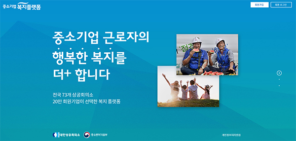 플랫폼은 중소기업 임직원에게 휴양소, 건강검진, 취미·자기계발 등 복지 서비스 상품을 시장 최저가 혹은 그 보다 할인한 금액으로 제공하는 사이트다.