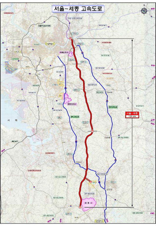 | 서울~세종 고속도로 129km(6차로) 위치도 |