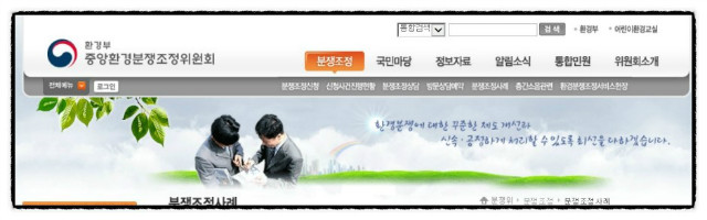 '환경분쟁 원인재정'은 중앙환경분쟁조정위원회 누리집(