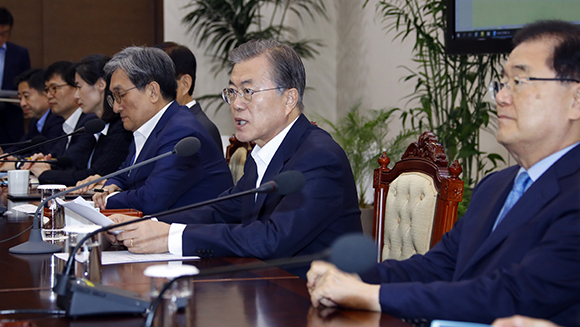 문재인 대통령이 7일 오후 청와대에서 열린 수석·보좌관회의에서 발언하고 있다. (사진=(c) 연합뉴스) |