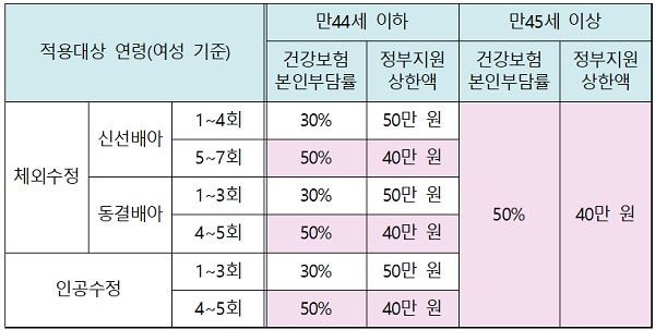 난임 시술 건강보험 본인부담율, 정부지원 최대 지원금액 |