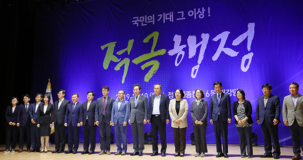 이낙연 국무총리가 10일 세종시 정부세종청사에서 열린 적극행정 추진전략 및 성과 공유대회에서 참여자들과 함께 적극행정 실천을 다짐하며 적극행정지원위원회 위원들과 기념촬영 하고 있다. (사진=(c) 연합뉴스)정부는 지난 3월 적극행정 추진방안을 마련해 빠르게 변화하는 행정환경에 대응하고 더 나은 국민의 삶을 만들기 위해 적극행정을 공직사회의 새로운 패러다임으로 제시했다.
