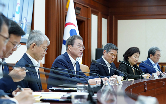 문 대통령은 이날 오후 주재한 경제장관회의에서 “그동안 정부는 적극적 재정 정책을 통해 경기의 급격한 위축을 막고 경기 반등 여건을 조성하는 노력을 기울여 왔다. 이러한 노력을 더욱 확대해야 한다”며 이같이 밝혔다.