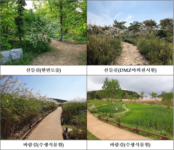 먼저 ‘산들길’은 한반도숲과 비무장지대(DMZ) 야외전시원, 미디리움(디지털체험관), 생태놀이터를 두루 둘러 볼 수 있다.
