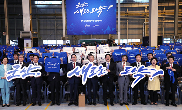 중소벤처기업부는 24일 명신 군산공장(구 한국GM 공장)에서 군산형 일자리 상생협약식이 열렸다고 밝혔다.