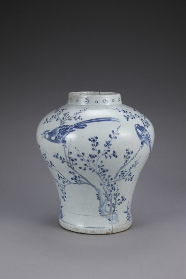 <「백자 청화매조죽문 항아리」>