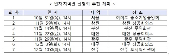 설명회는 31일 서울을 시작으로 ▲창원(11월 5일) ▲부산(11월 14일) ▲대전(11월 22일) ▲광주(11월 26일) ▲대구(12월 3일) ▲전주(12월 10일) 순으로 이뤄진다.