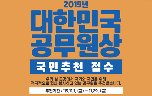 11월 1일부터 29일까지 국민추천을 받는 ‘2019년 대한민국 공무원상’. |