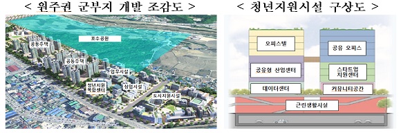 또 원주 혁신도시 특화산업인 스마트헬스케어 육성 거점으로 쓰일 혁신성장 공간을 해당 부지에 조성한다. 스타트업, 벤처 창업지원 플랫폼 등을 유치한다는 계획이다.