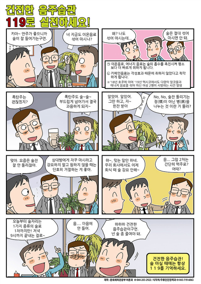 [일간환경연합 신상미 기자]다음은 음주습관 입니다. 건전한 음주습관 119로 꼭 실천하세요!