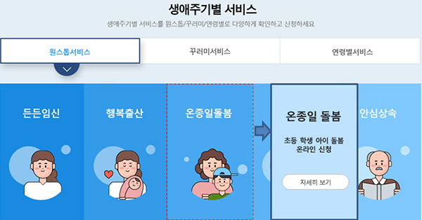 원스톱 서비스로 제공하는 돌봄 서비스는 ▲교육부의 학교 내 돌봄인 ‘초등돌봄교실’ ▲보건복지부의 지역 기반 돌봄인 ‘다함께돌봄’ 및 취약계층 지원을 위한 ‘지역아동센터’ ▲여성가족부의 청소년 활동지원을 위한 ‘청소년방과후아카데미’ 등 4가지다.