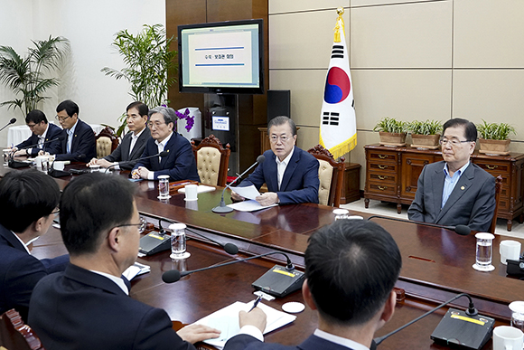 일본의 수출 규제에는 의연하고 당당히 대응해 소재·부품·장비 산업의 경쟁력을 강화하는 계기로 삼고 있고, 아무도 흔들 수 없는 나라로 가는 초석을 다지고 있습니다.