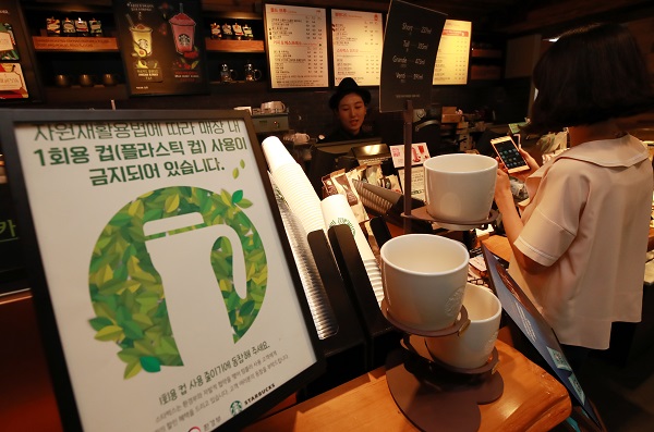 서울 중구 소공동 스타벅스 지점에 일회용컵 사용 줄이기 동참 캠페인 안내문이 게시돼 있다.(사진=(c) 연합뉴스)이는 지난해 4월 수도권의 폐비닐 수거거부 사태와 올해 발견된 120만 톤의 불법 방치 또는 투기된 폐기물 문제를 겪으면서 근본적으로 폐기물을 감량할 필요가 있다는 배경에서 추진됐다.