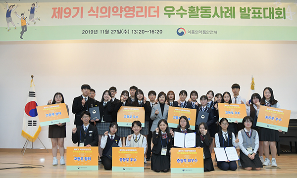 그리고 27일 열린 2019년 제9기 식의약 영리더 우수활동사례 발표대회에서는 중등팀 ‘쇼미더당’과 고등팀 ‘드럭더비트팀’이 영예의 최우수상을 수상했다.