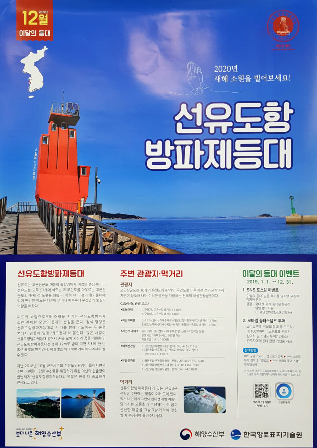 [일간환경연합 신상미 기자]해양수산부(장관 문성혁)는 전라북도 군산시 옥도면에 위치한 ‘선유도항 방파제등대’를 12월 이달의 등대로 선정하였다.
