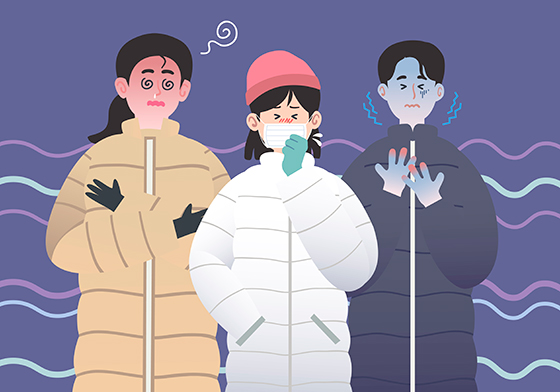 질병관리본부는 특히 체온 유지에 취약한 고령자와 어린이, 추위로 인해 증상이 악화될 수 있는 만성질환자(심뇌혈관질환자, 당뇨병, 고혈압 등)의 경우에는 무리한 신체 활동을 피하고 보온에 더욱 신경 써야 한다고 당부했다.