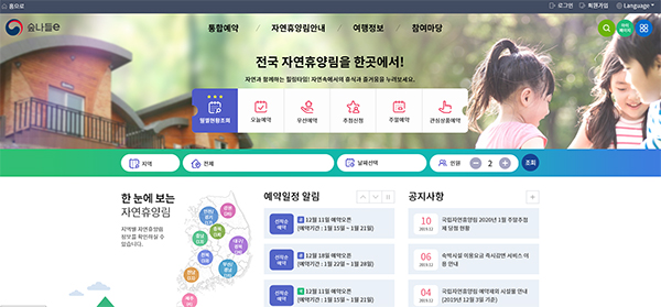 이를 해결하기 위해 2017년 산림청은 민간에서 운영하는 호텔예약 사이트에서 영감을 얻어 자연휴양림을 통합예약 할 수 있는 체계를 구상했다.