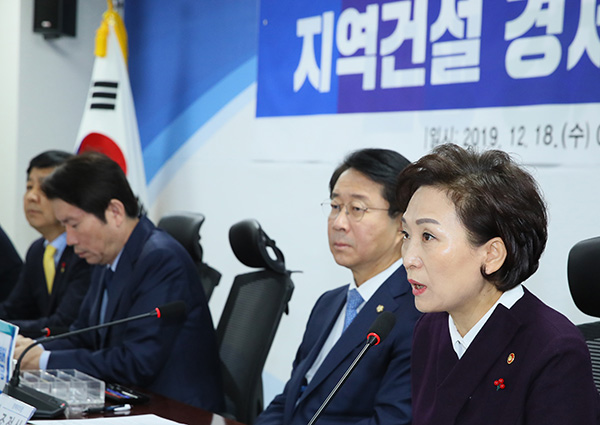 김현미 국토교통부 장관이 18일 국회 의원회관에서 열린 ‘지역건설 경제활력대책 당정협의’에서 발언하고 있다.(사진=(c) 연합뉴스) |