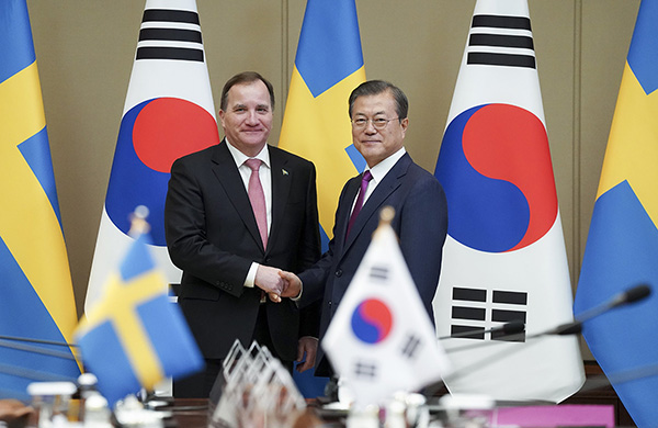 [일간환경연합 김경훈 기자]문재인 대통령은 한국을 공식 방문 중인 스테판 뢰벤 스웨덴 총리와 18일 오후 정상회담을 갖고 양국관계 발전 및 실질협력 증진 방안, 한반도 정세 등에 대해 폭넓게 협의했다고 청와대가 밝혔다.