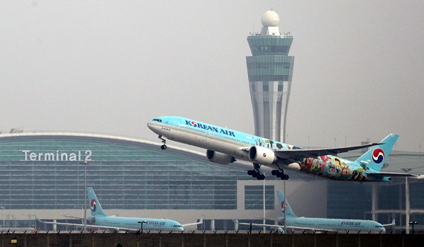 인천국제공항 제2여객터미널에서 대한항공 항공기가 이륙하고 있다.(사진=(c) 연합뉴스) |