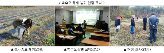 또한 재배 농민과 시·군 농업기술센터 직원들을 대상으로 백수오 구별 방법을 교육하고 ‘백수오 바로알기’ 안내 책자도 나눠줬다.