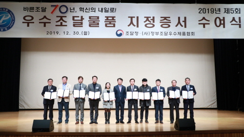 [일간환경연합 김경훈 기자]조달청(청장 정무경)은 2019년 마지막 회차인 제5회 우수제품 지정심사를 통과한 42개 제품을 우수제품으로 지정하고, 12월 30일(월) 정부대전청사 대강당에서 지정증서를 수여했다.