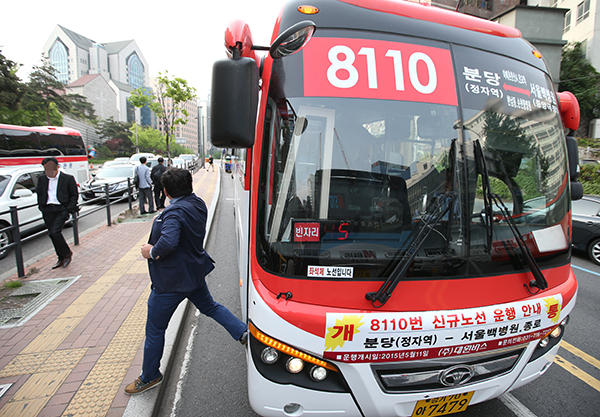 서울 중구 서울백병원 버스환승센터에서 성남~서울 광역급행버스 8110번이 운행되고 있다.(사진=(c) 연합뉴스) |