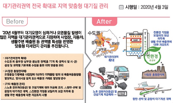 오는 4월부터 대기관리권역을 전국으로 확대해 지역별로 맞춤형 미세먼지 관리를 추진한다.